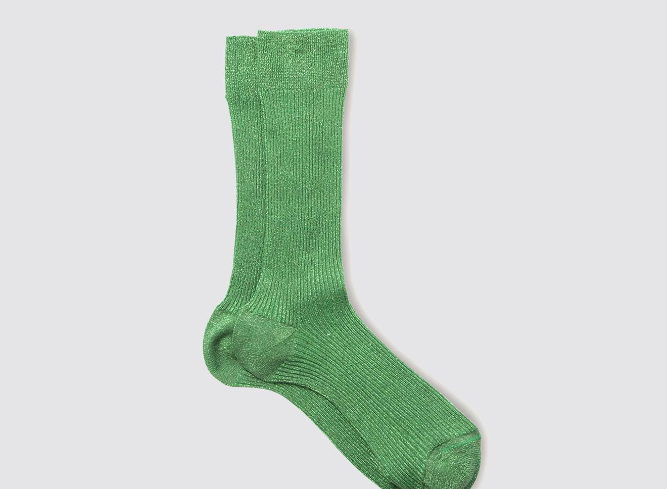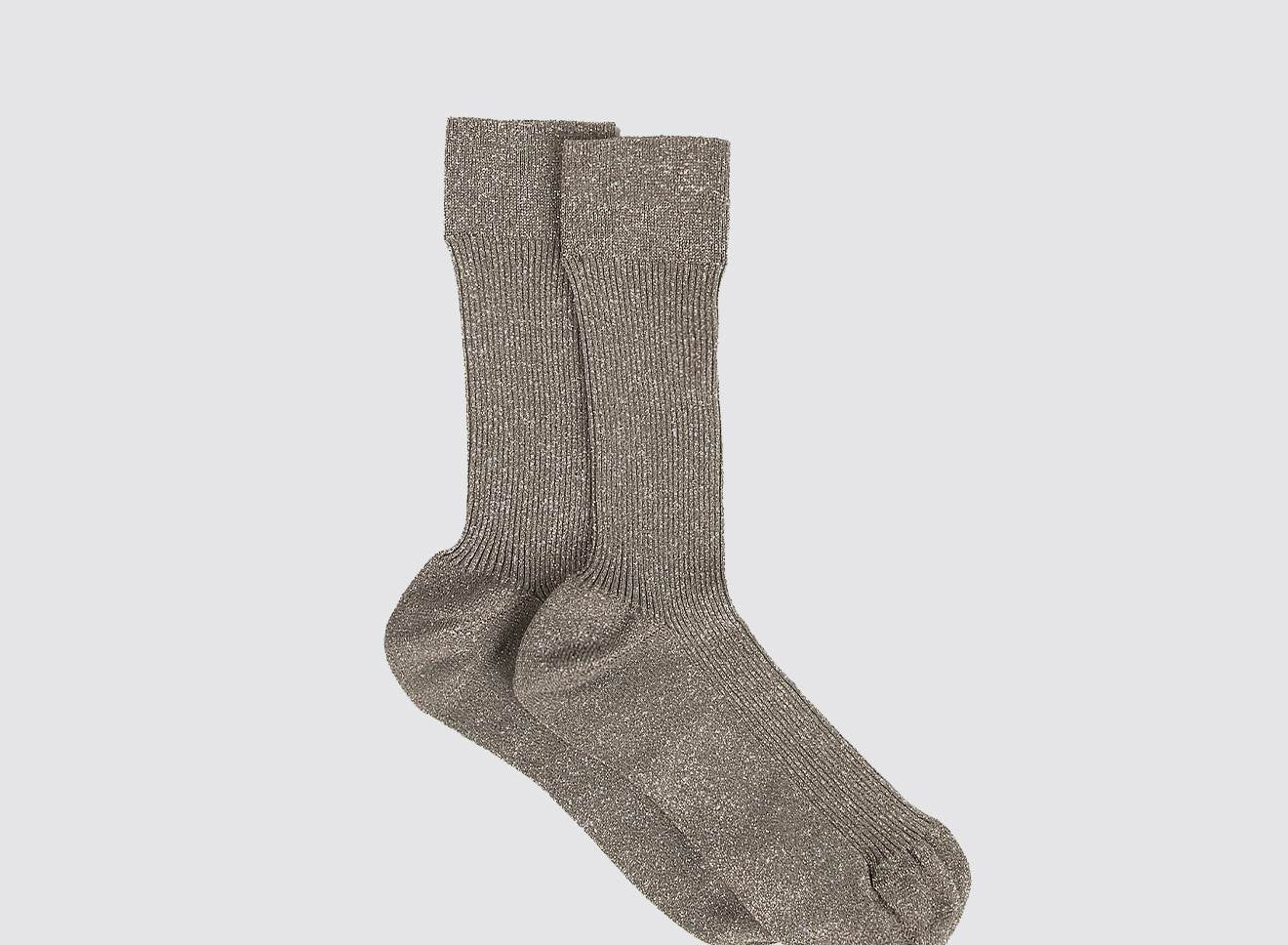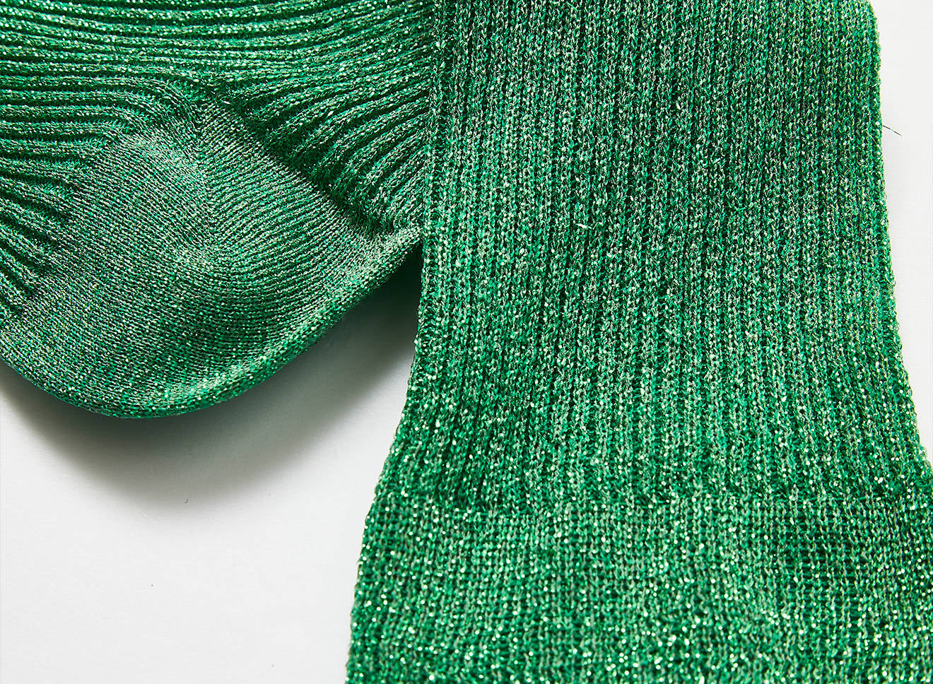 Calzini lurex da donna a costine, a metà polpaccio, adatti a tutte le stagioni.