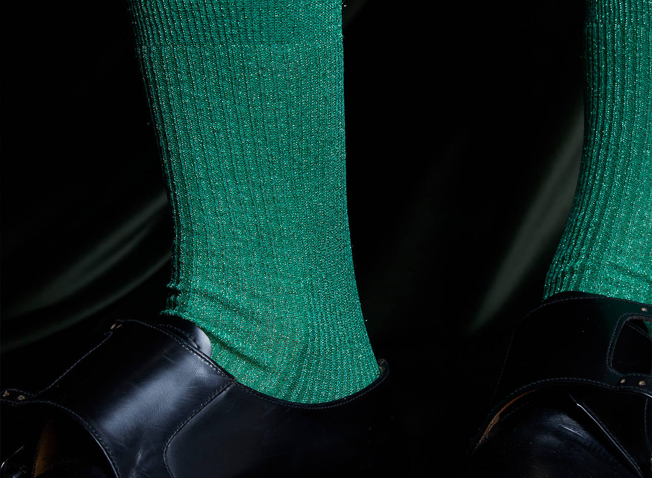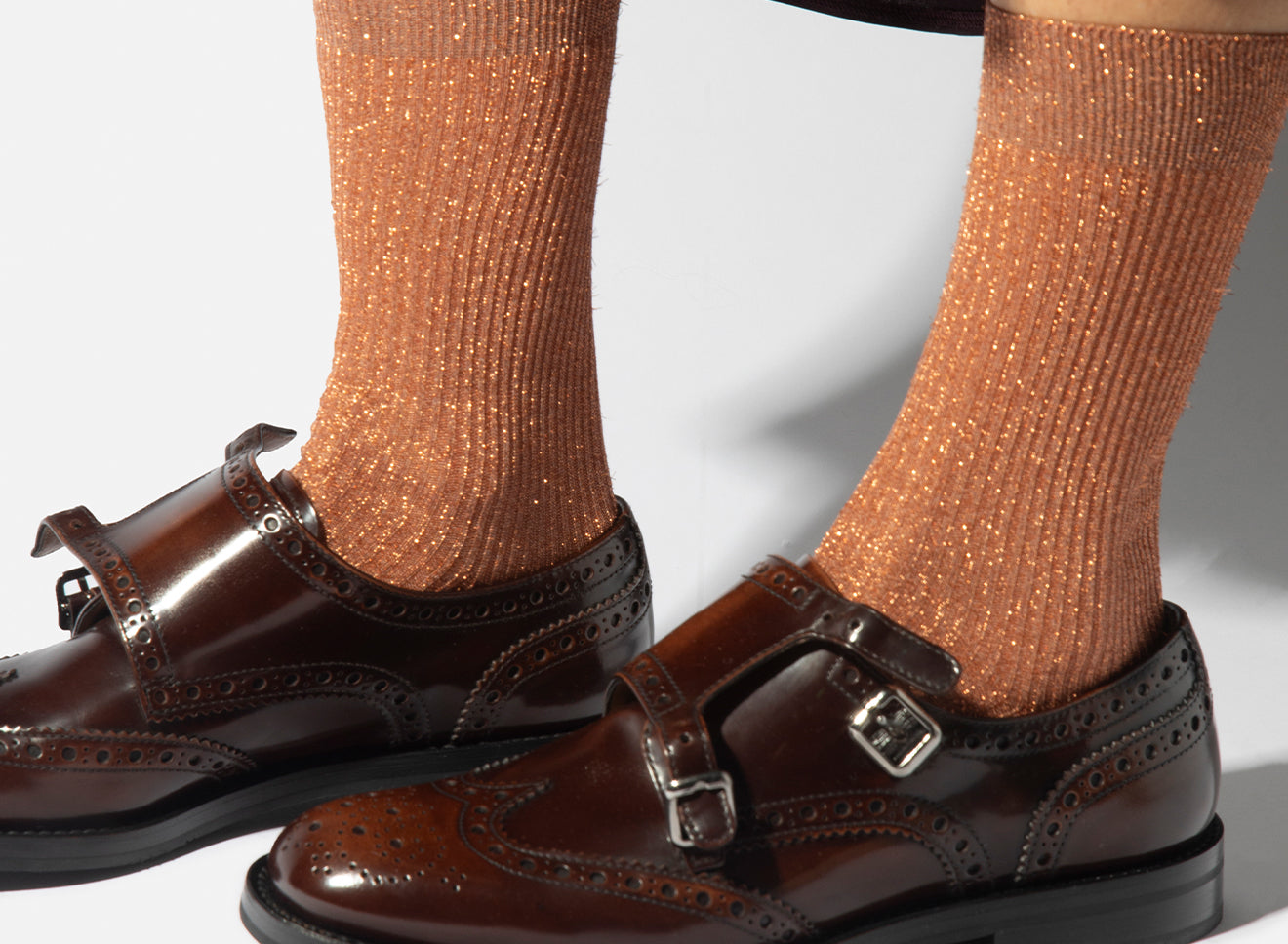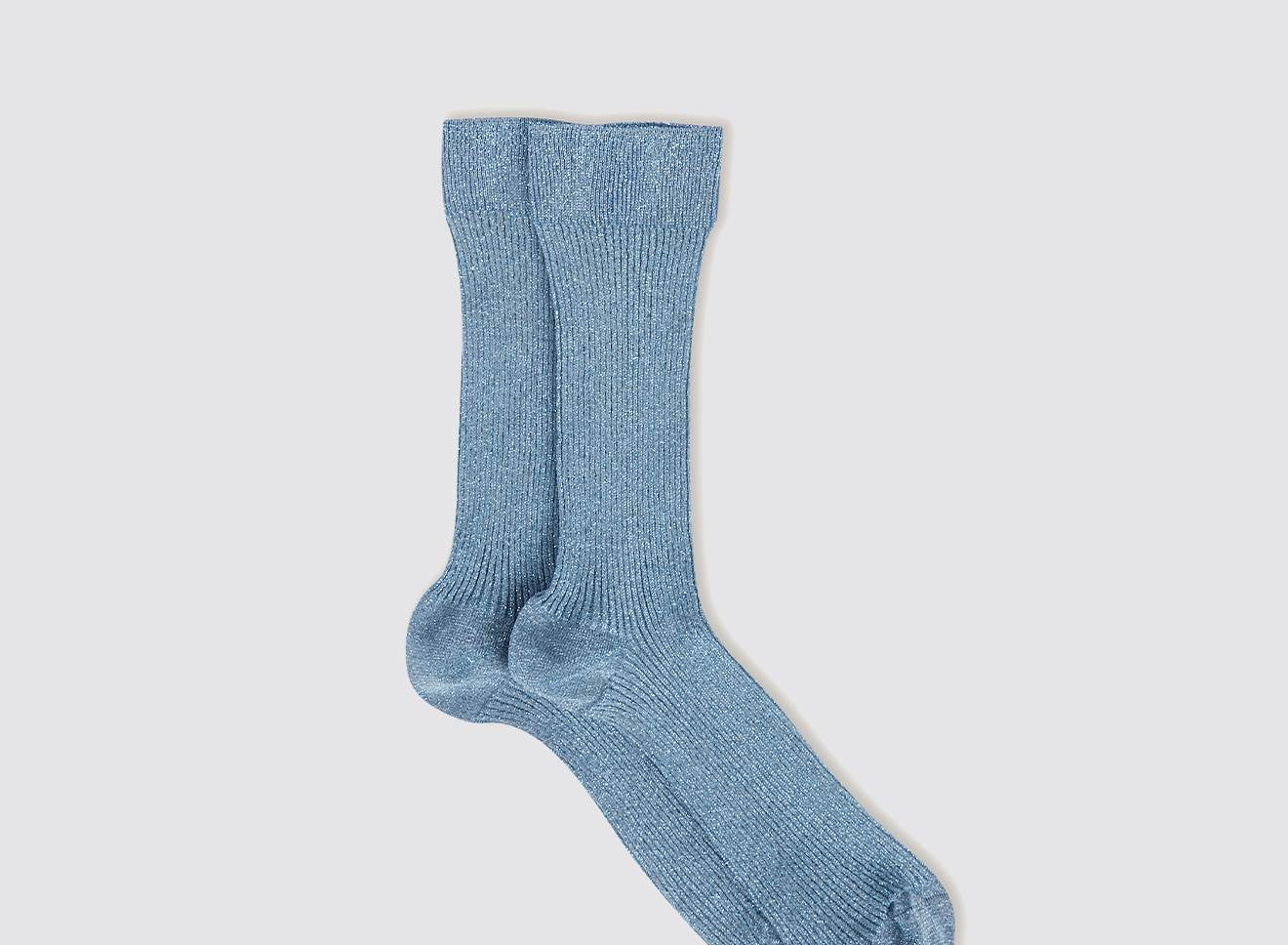 Calzini lurex da donna a costine, a metà polpaccio, adatti a tutte le stagioni.