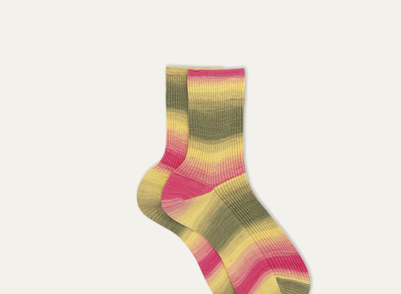 Questo modello risulta, infatti, leggerissimo e comodo al piede grazie alla lavorazione a coste, ma soprattutto alla purezza della fibra in cotone, che dona, inoltre, freschezza e traspirabilità. Con le loro incredibili sfumature, sembrano trasportarci in atmosfere oniriche, tra i colori di albe, tramonti, aurore boreali e profondi cieli notturni.